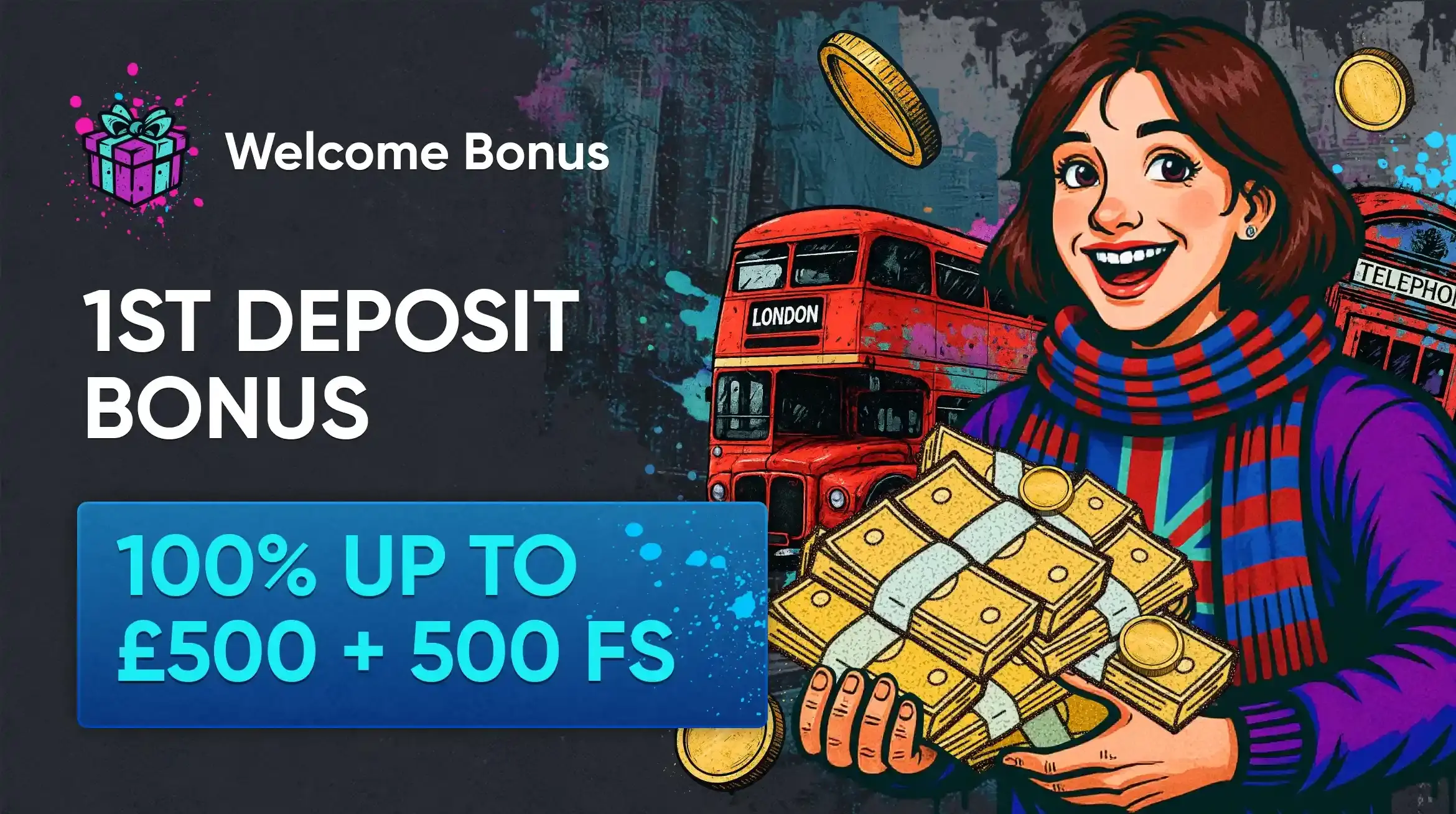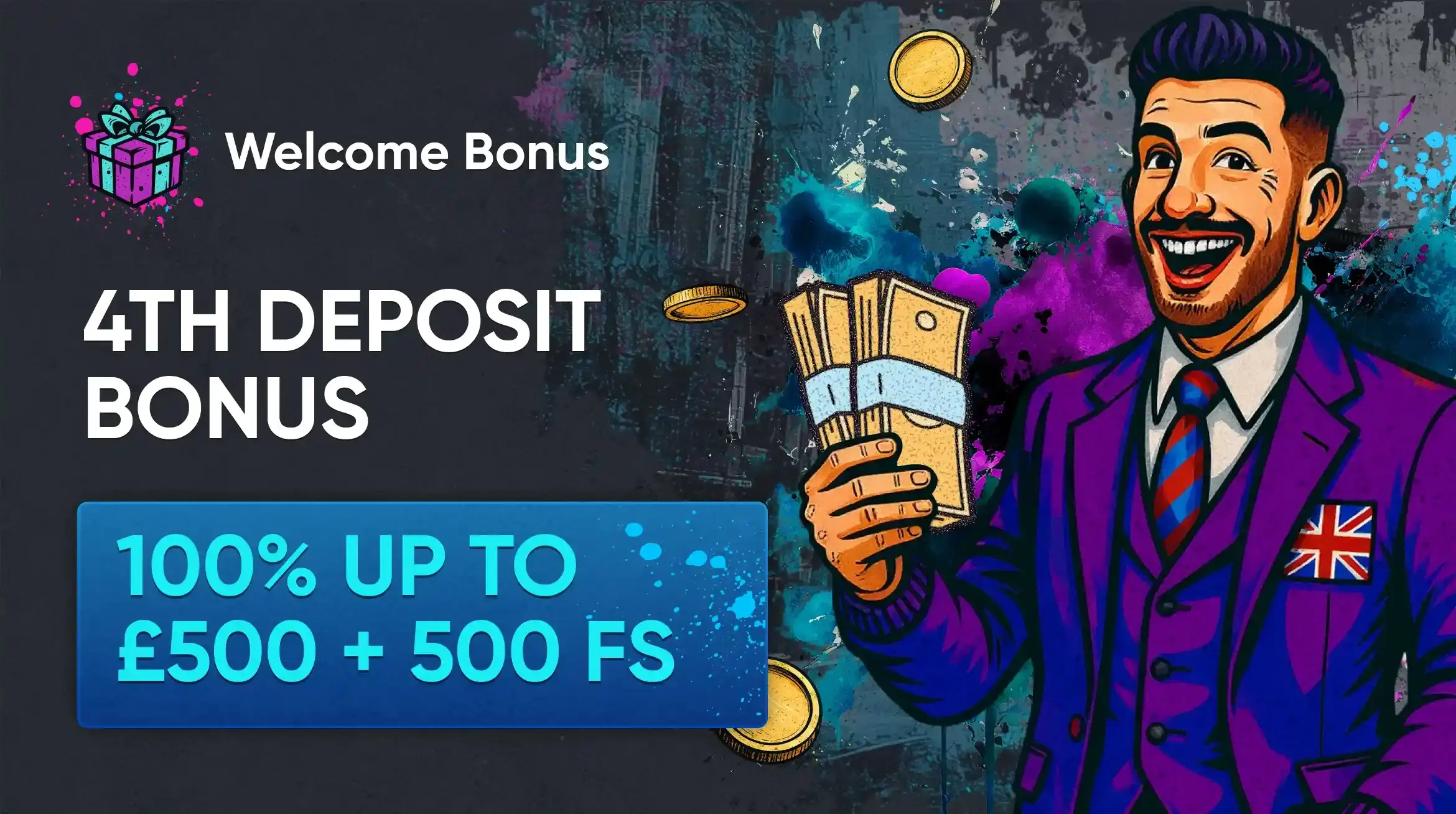 | Welcome — 4th deposit | 100% up to £500 + 500 FS | BLOOMSB |