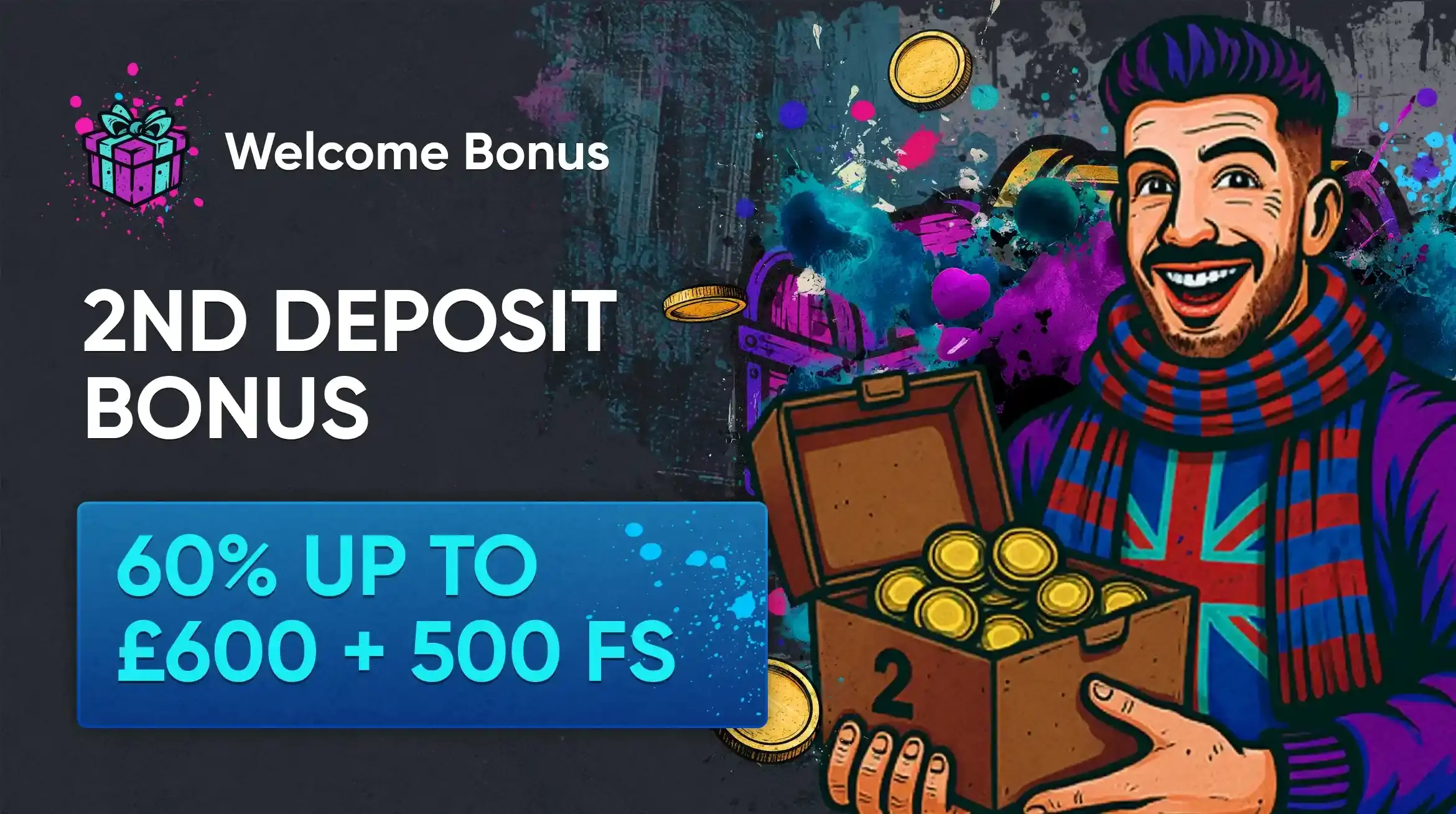 | Welcome — 2nd deposit | 60% up to £600 + 500 FS | CAMDEN |